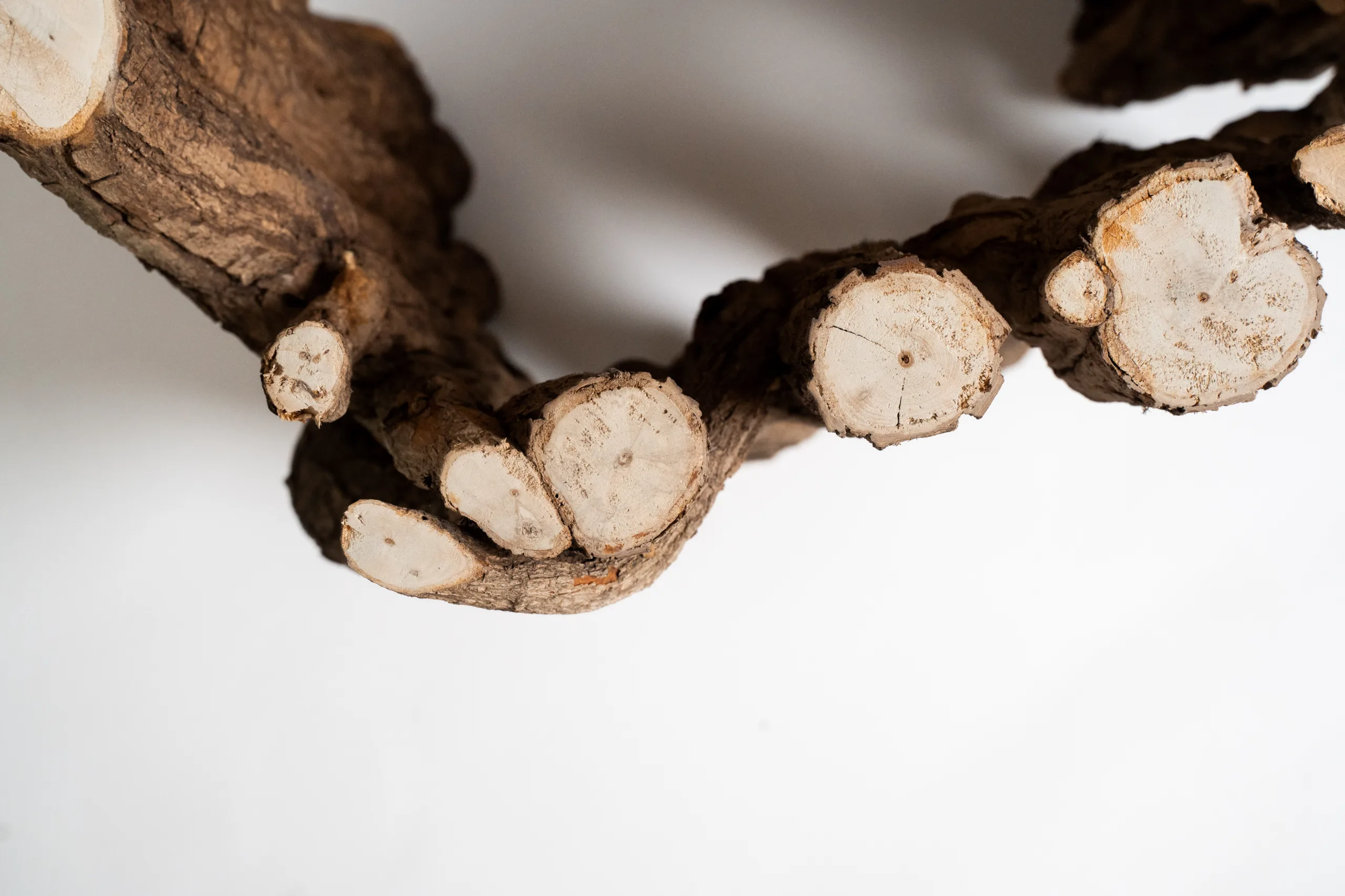 - Letokruhy a struktura dřeva viditelné v průřezech