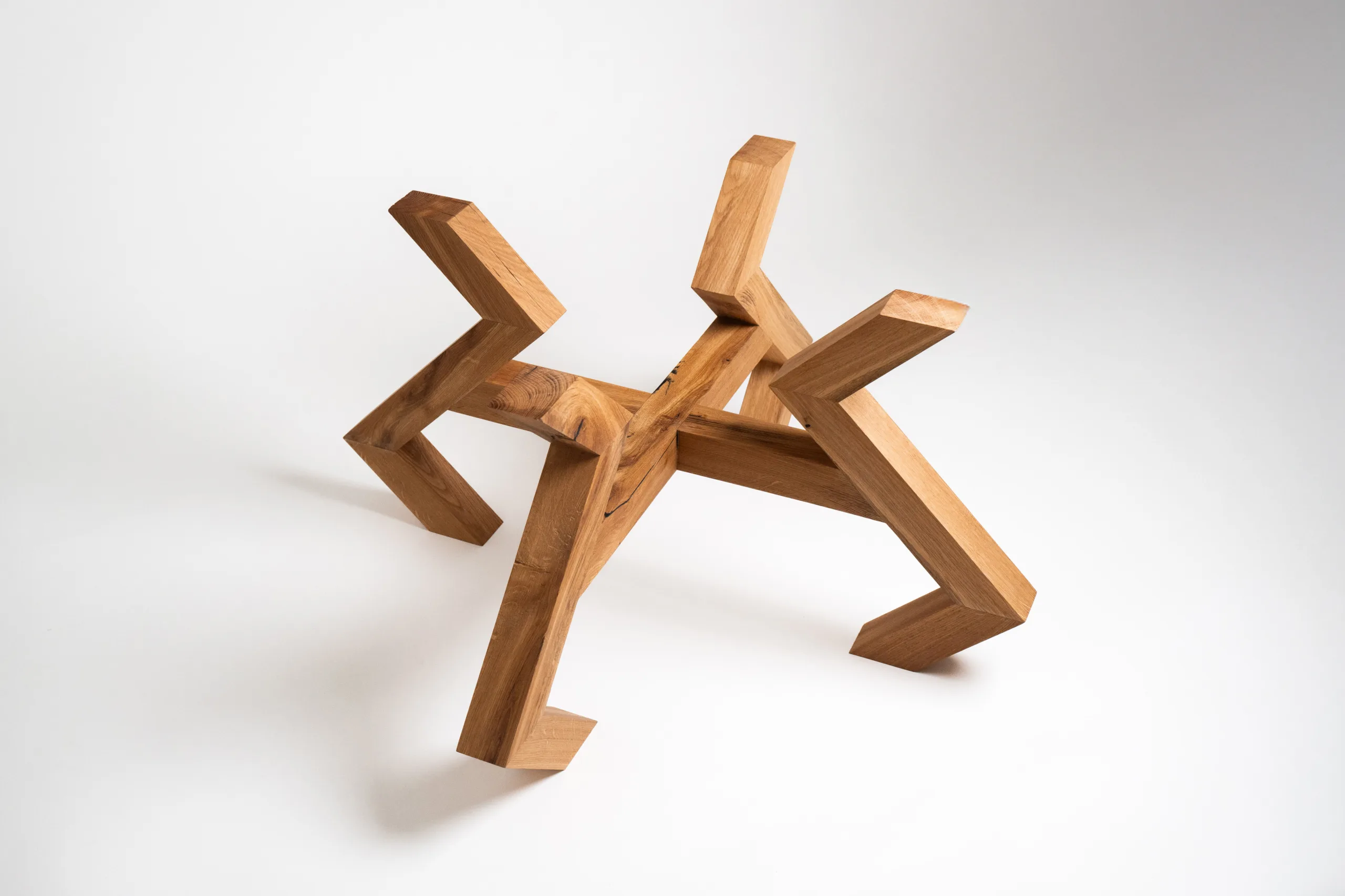 Borne Ver je unikátní podnož pro konferenční stůl, která přináší dokonalou rovnováhu mezi funkčností a estetikou. Vyrobena z masivního dubového dřeva, vyniká svou originální konstrukcí s lámaným tvarem nohou a pevnými X-spoji, které zajišťují maximální stabilitu a vizuální lehkost.