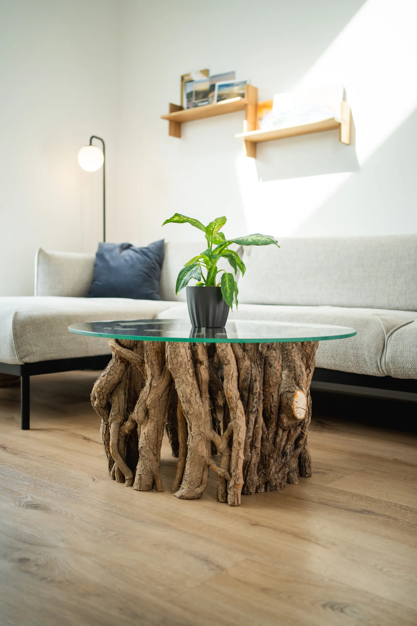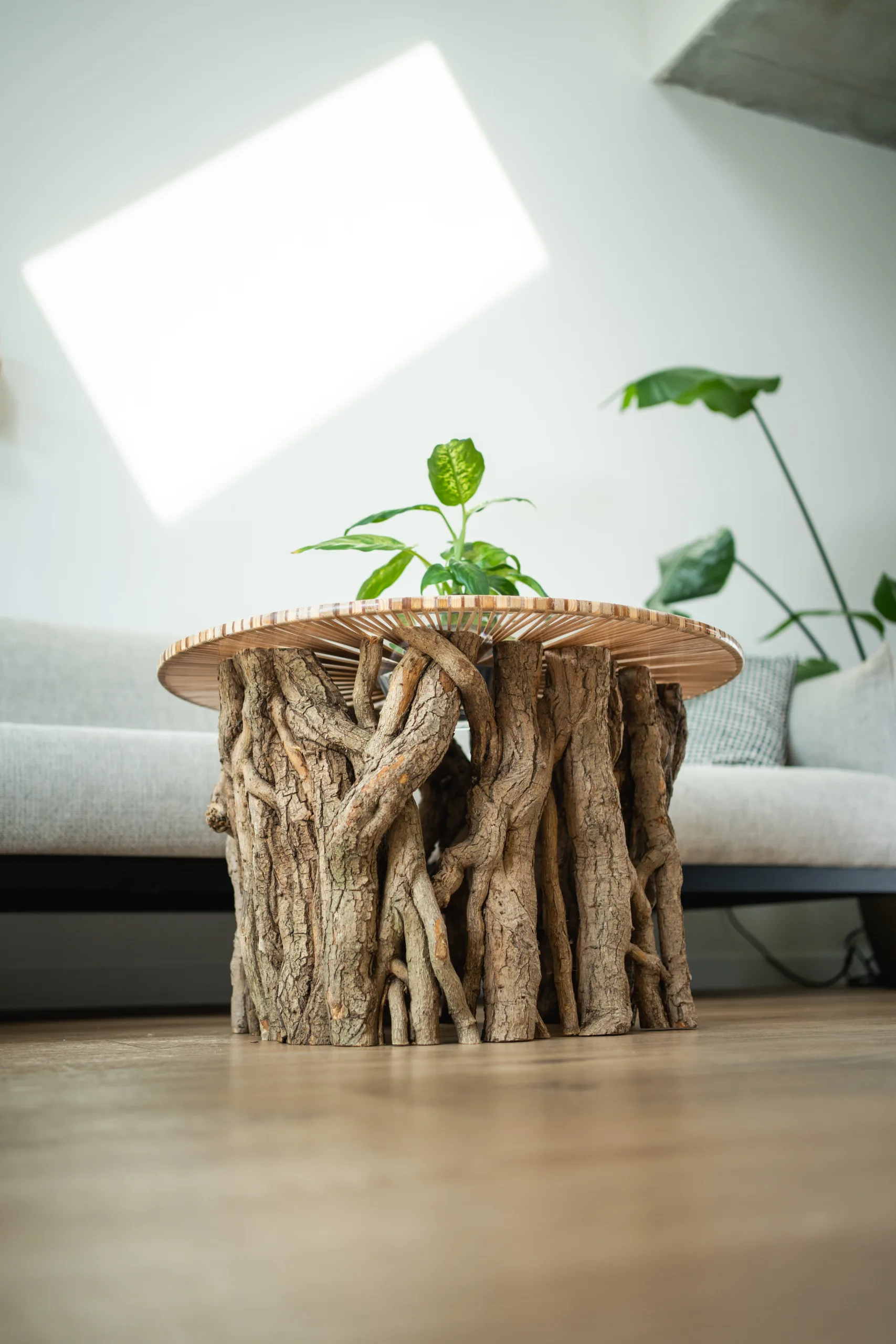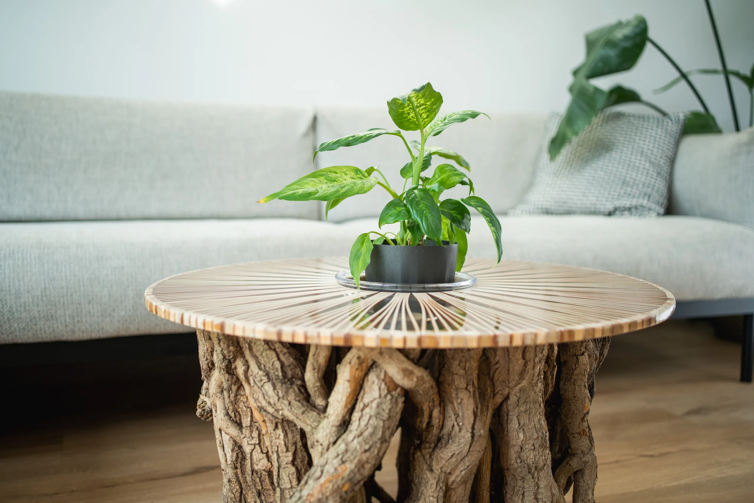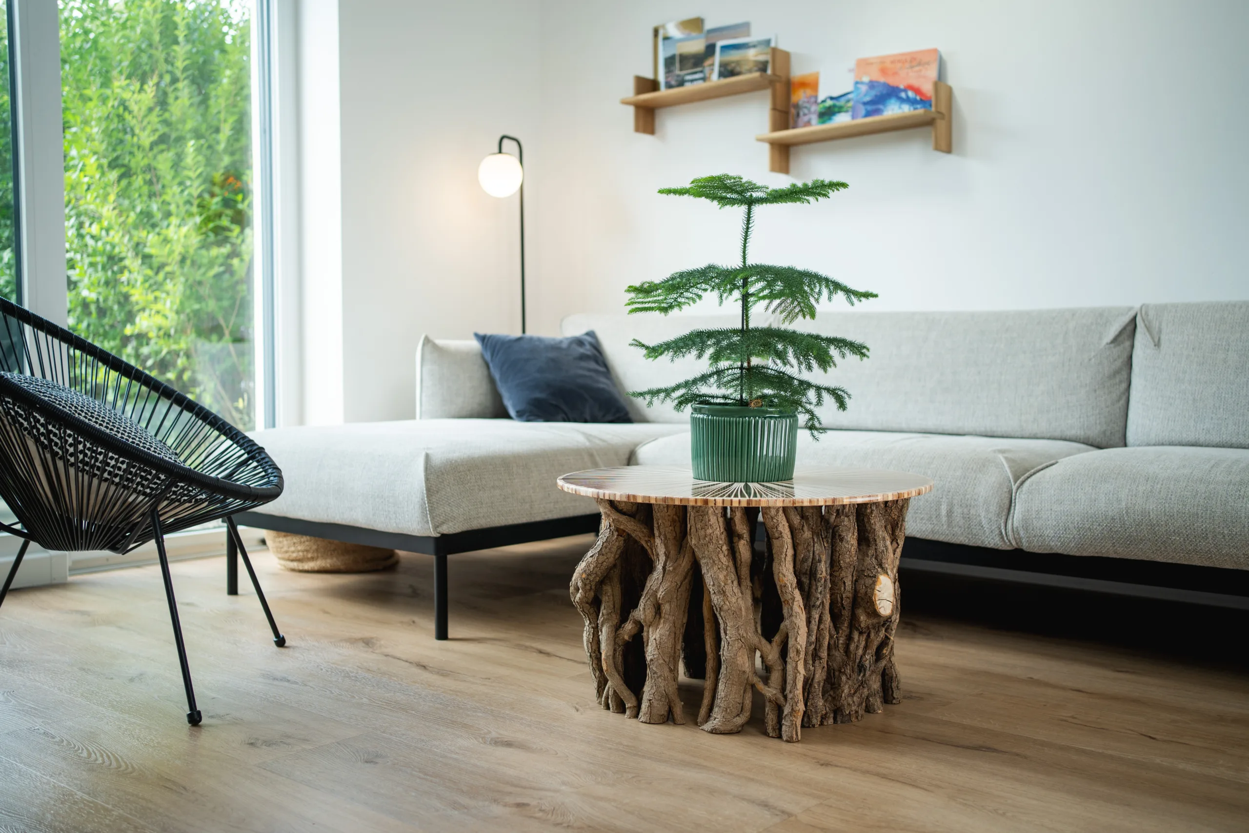 Máte několik možností finální úpravy – při volbě epoxidové nebo skleněné desky se v horní části podnože odhalí průřezy větvemi, kde lze spatřit detailní kresbu letokruhů. Stůl Bon Lunelle je navržen pro stolové desky o průměrech 60, 70 i 80 cm, což umožňuje přizpůsobení různým potřebám prostoru. Naše oblíbená kombinace je s deskou Arbo Iris, jejíž střed můžete doplnit květináčem. Vybrat si však můžete kteroukoliv desku z naší pestré nabídky. Náš koncept umožňuje volně kombinovat podnože s různými stolovými deskami.