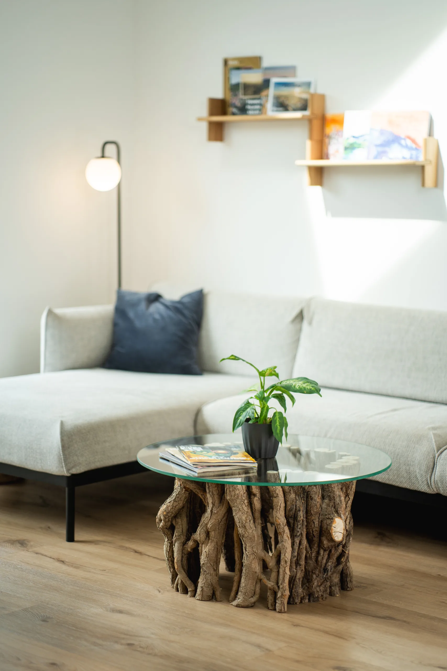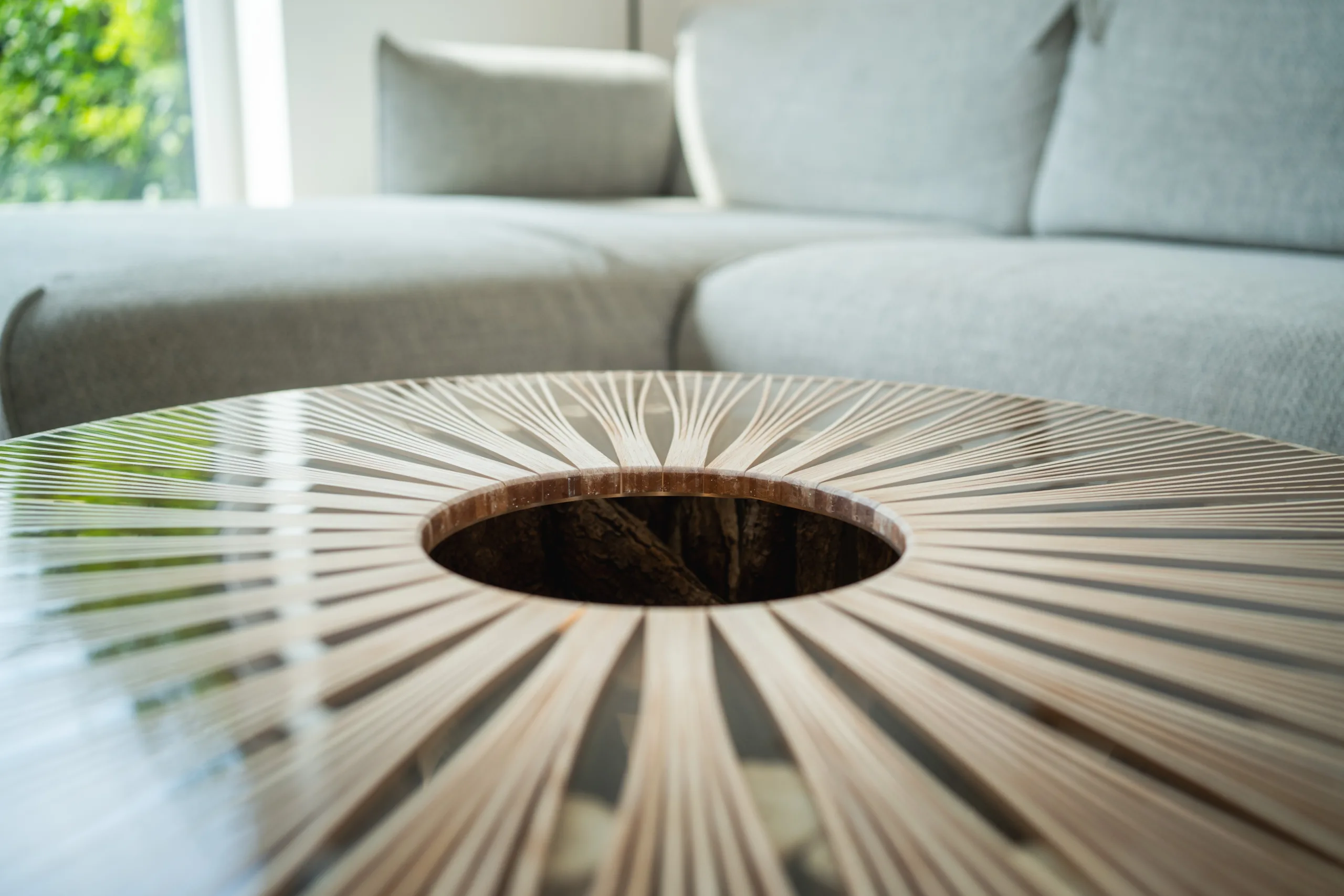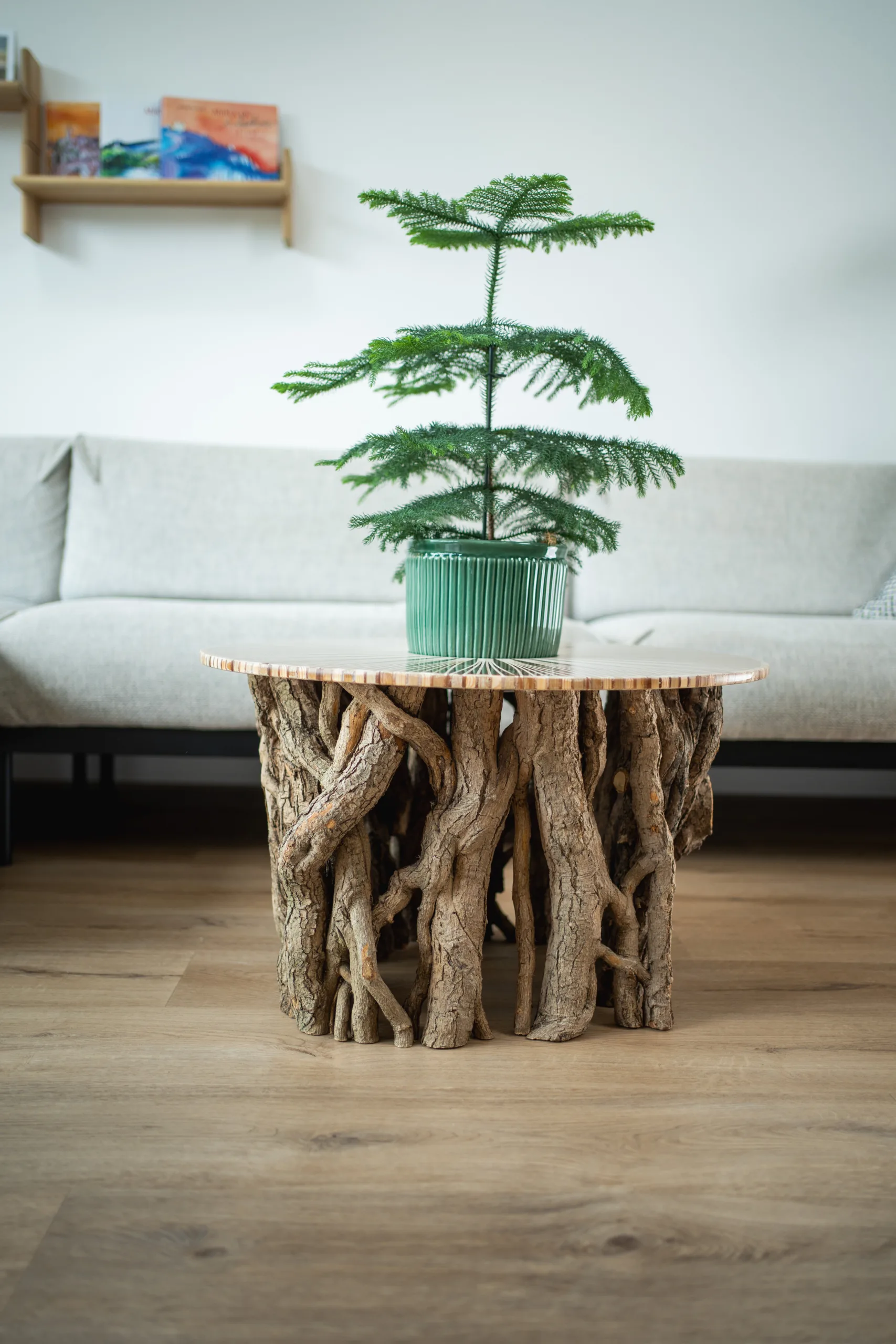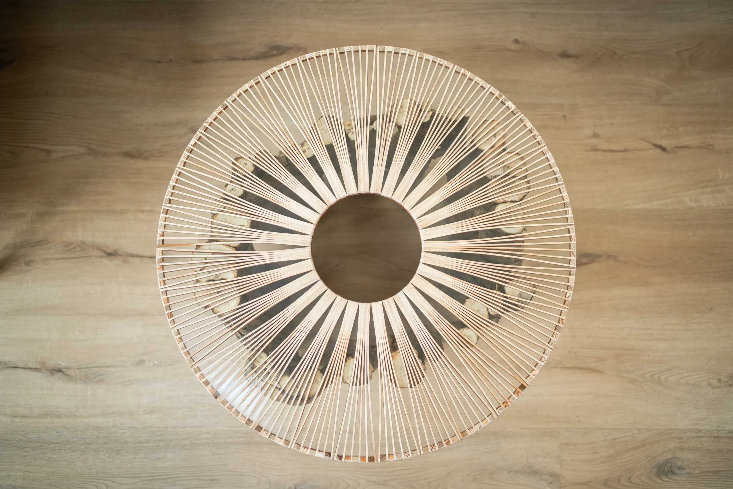 Máte několik možností finální úpravy – při volbě epoxidové nebo skleněné desky se v horní části podnože odhalí průřezy větvemi, kde lze spatřit detailní kresbu letokruhů. Stůl Bon Lunelle je navržen pro stolové desky o průměrech 60, 70 i 80 cm, což umožňuje přizpůsobení různým potřebám prostoru. Naše oblíbená kombinace je s deskou Arbo Iris, jejíž střed můžete doplnit květináčem. Vybrat si však můžete kteroukoliv desku z naší pestré nabídky. Náš koncept umožňuje volně kombinovat podnože s různými stolovými deskami.