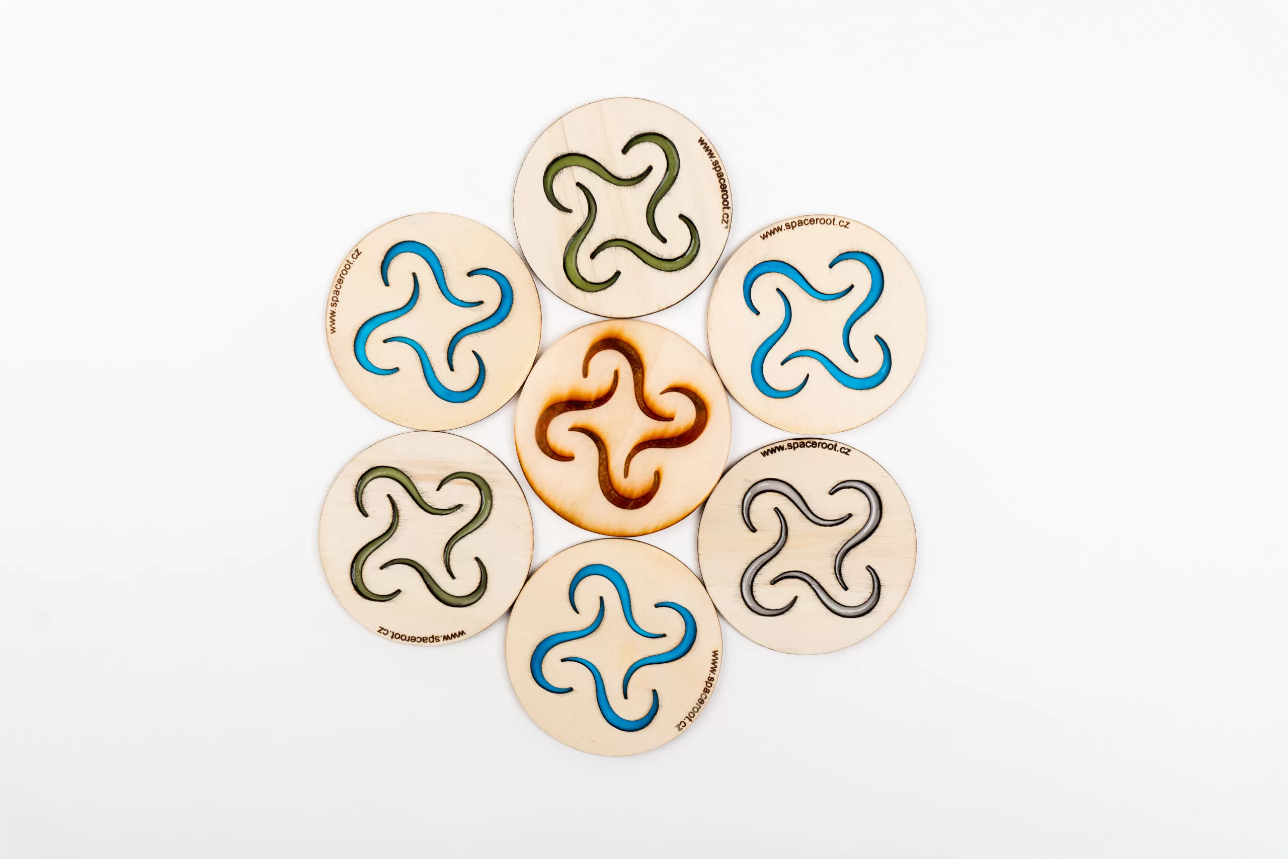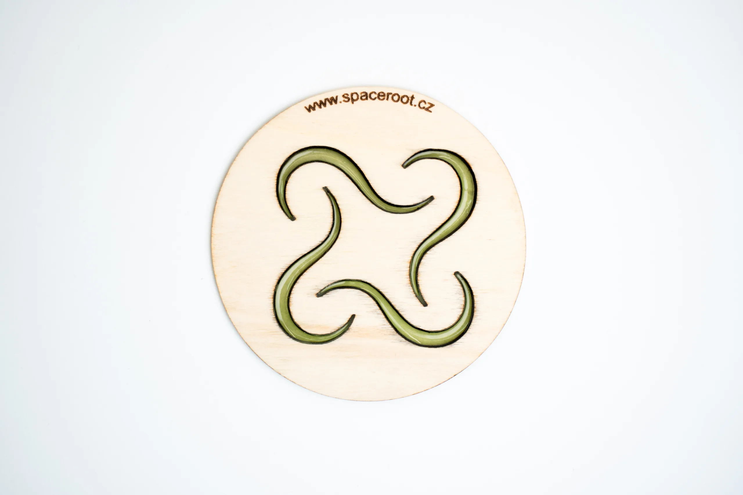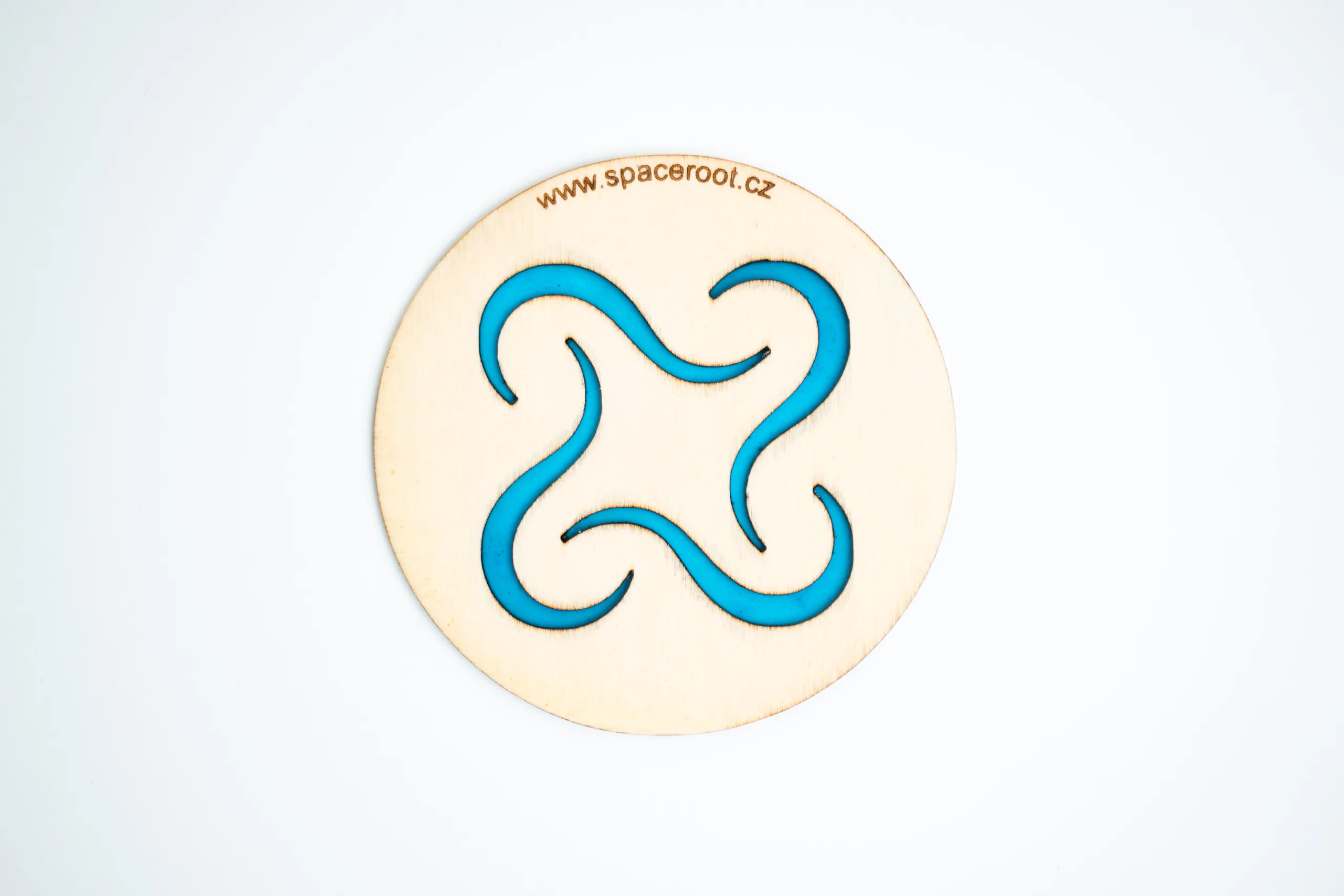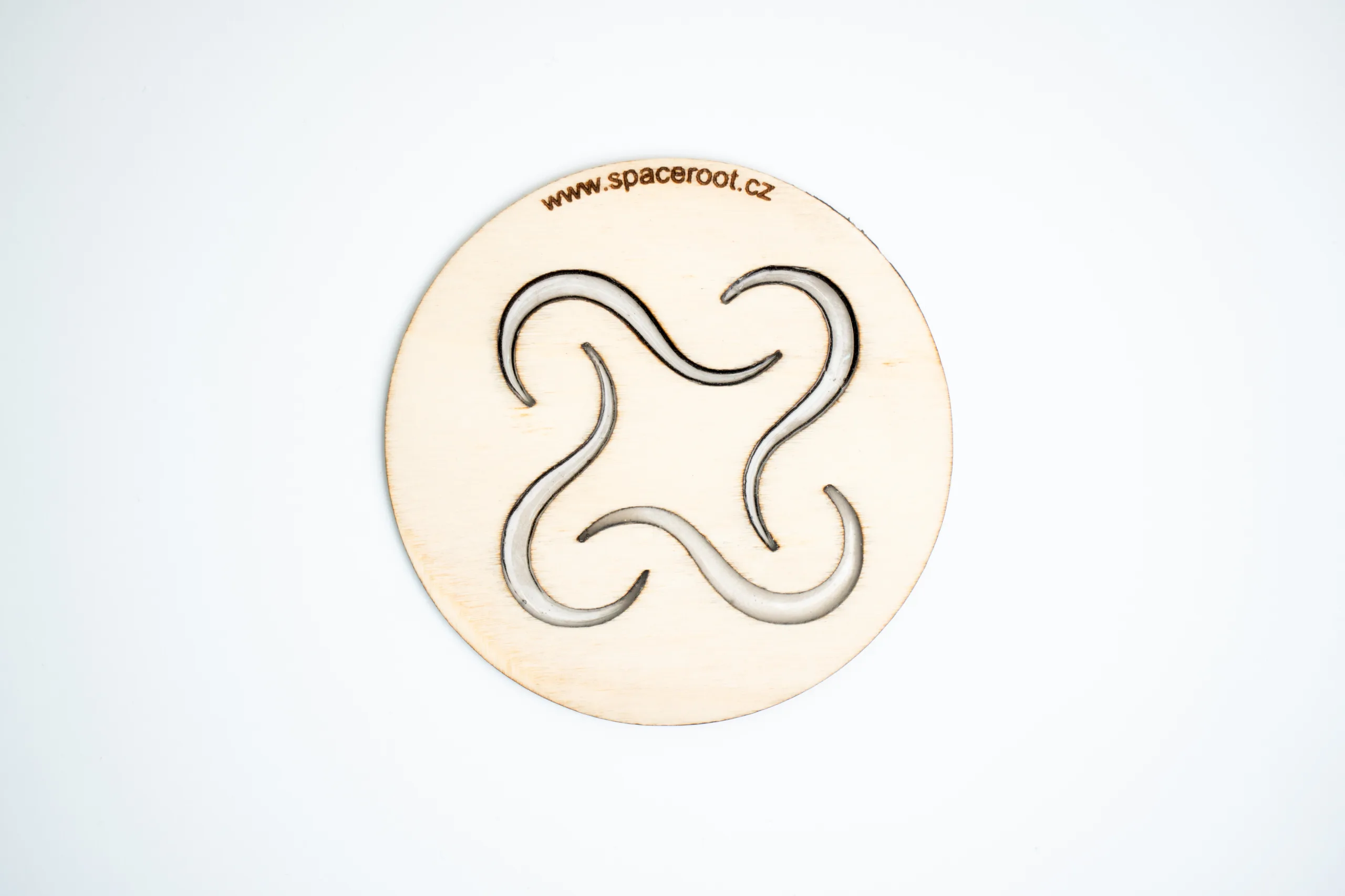 Dřevěné podtácky jsou vyrobeny z kvalitního přírodního dřeva, do kterého je laserem vypáleno logo Space Root s vysokou přesností. Logo je poté vyplněno epoxidovou pryskyřicí, která mu dodává odolnost proti vodě a jedinečný lesklý efekt.