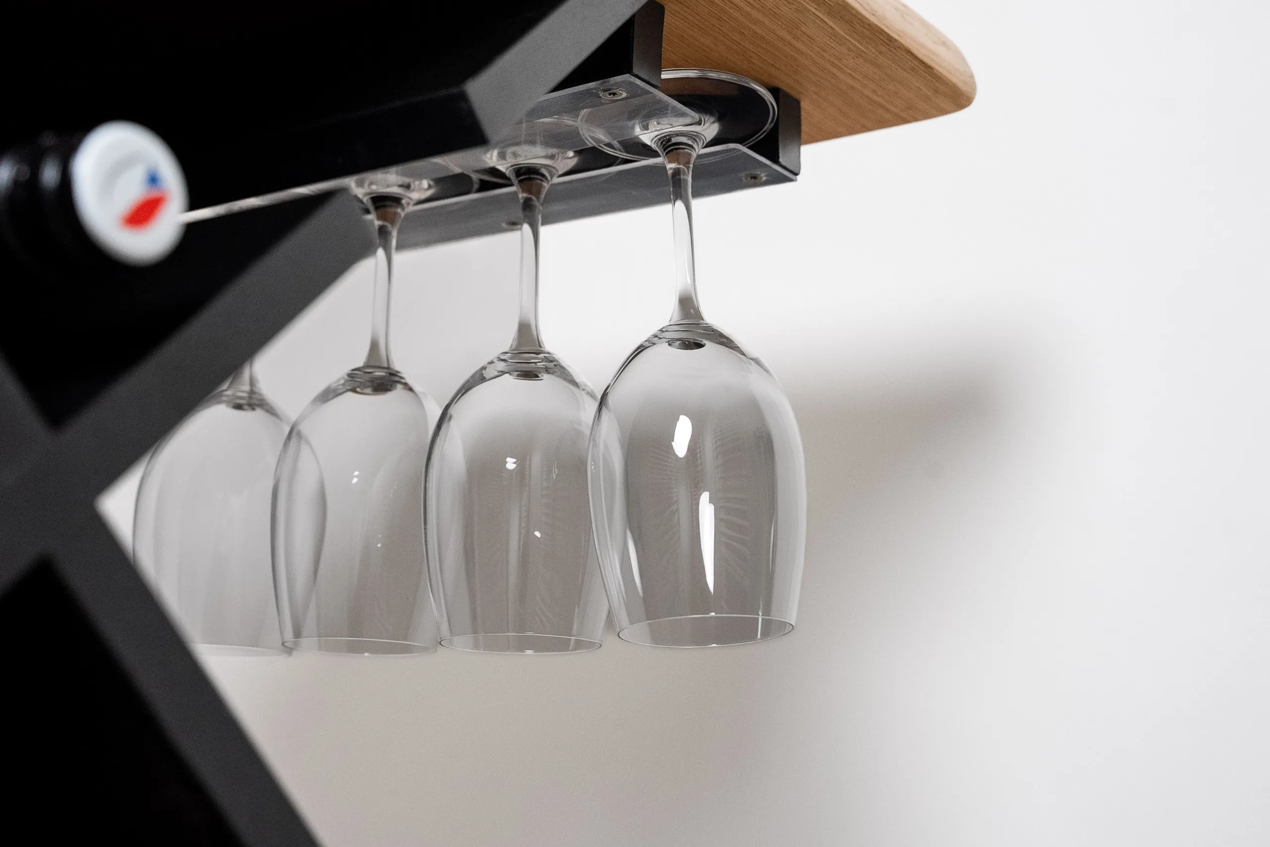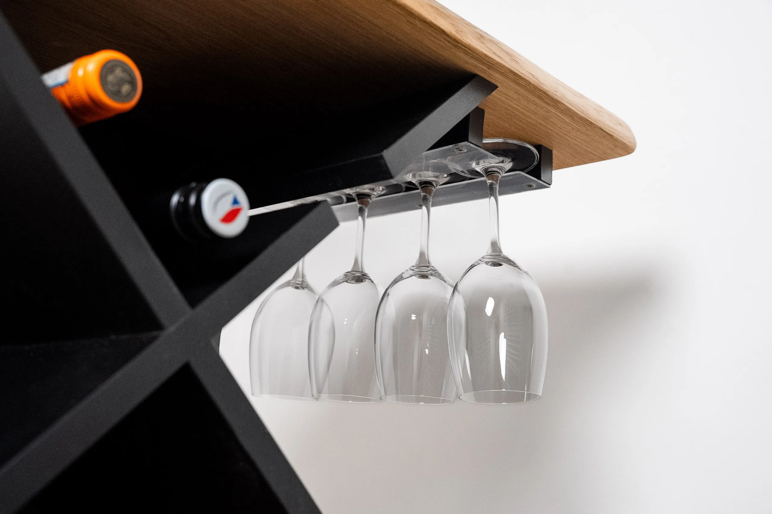 Podnož z kvalitního lamina je nejen pevným základem, ale také praktickým místem pro uložení vašich lahví. Vinný stůl Bon Vit je díky kvalitnímu řemeslnému zpracování a silné konstrukci velmi odolný. Elegantní servírování zajistí také skrytá lišta, do níž lze zavěsit 4-5 sklenic na víno, takže jsou vždy rychle po ruce.