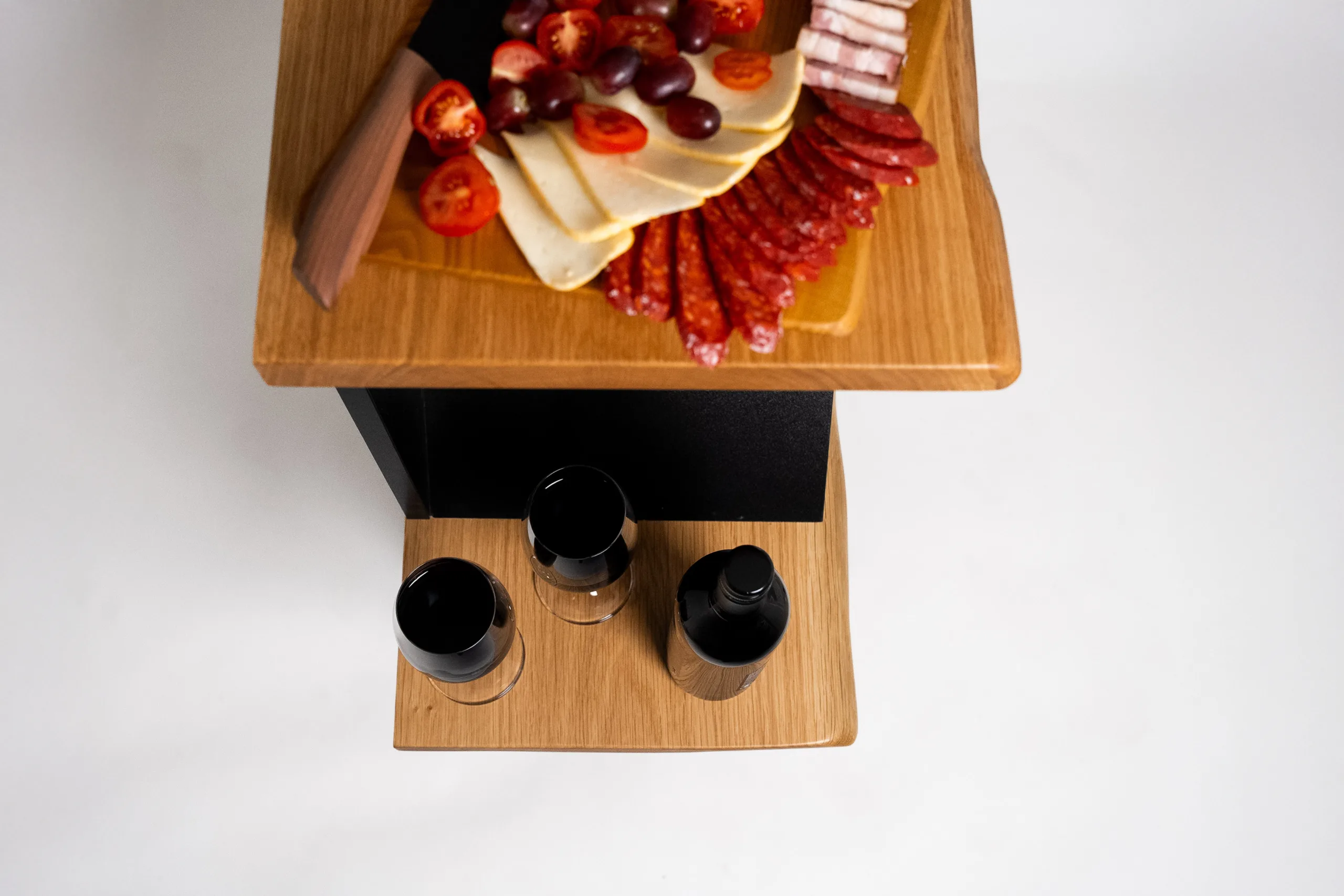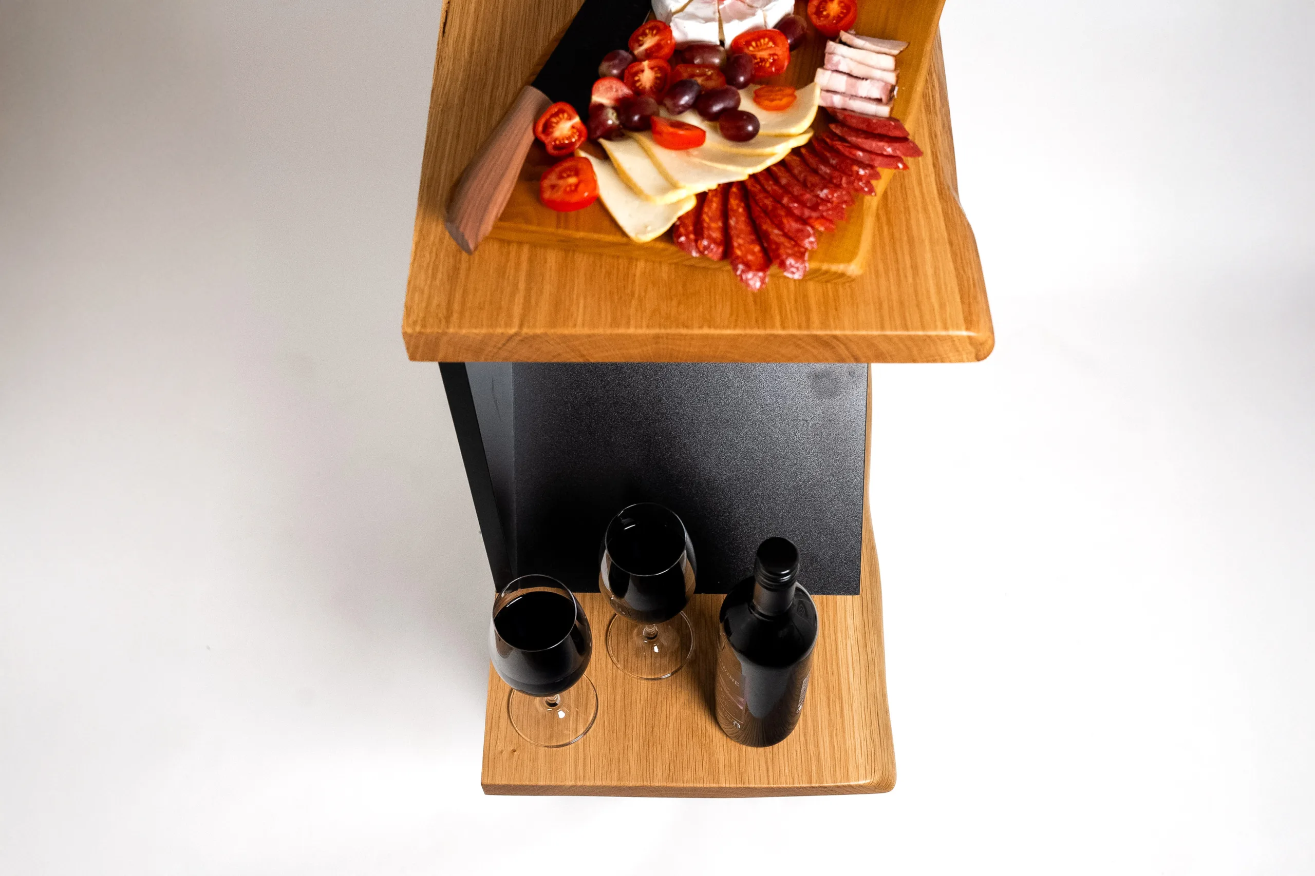 • Dvě dubové desky: praktické odkládací plochy